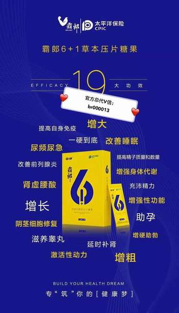 健康就是一切!没有了健康,那就等于你什么都没有了!药食同源产品,太平洋承保,不管你是早xie、阳wei、或者尺寸短小等男性功能障碍。霸郎都能还你奇迹,让你站在性福的高峰!→重返年轻,官方正品,一手货源→霸郎6+1官方总代微信:blk18986019218