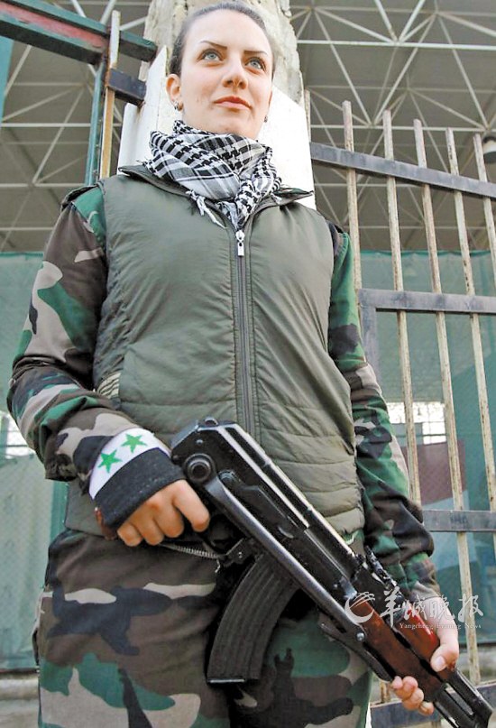 这些女子身着军服、手持卡拉什尼科夫冲锋枪(右图),主要负责霍姆斯市一些拥护政府统治地区的安保工作,同时对蒙面女性进行安全检查。