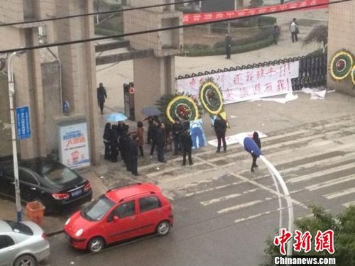 今天,陈应民的家人在学校门口摆了花圈和横幅,“小孩被送去医院的路上没有一个老师陪同,到现在15个小时了仍旧没校方相关人出来,我们只是想要事实真相。”陈一玲说,家长自事情发生后一直未在校门口见到任何校方人员。