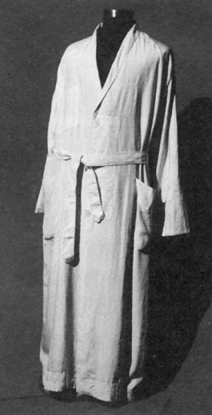 在毛泽东同志的众多遗物中,有一件物品十分引人注目,那是一件白色泛黄的棉质睡衣。这件睡衣材质一般,样式普通,夹层,香蕉领,外侧有两个口袋,长 141厘米。睡衣外观通体破旧,它的领子全换过,衣袖、前页、下摆等处补丁连补丁,竟达73个之多,以至几乎看不出本布。从50年代初一直到1971年,毛泽东春秋两季都穿它,这一穿就是二十年。尽管越来越旧,毛泽东却总不舍得扔掉。围绕它的去留更换问题,还发生了许多有趣的故事。