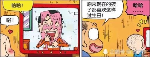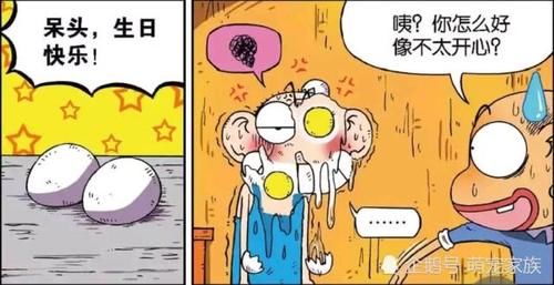 呆爸看到电视节目上有人在过生日,大家都把生日蛋糕直接砸向过生日的那个人,那个人没有生气,大家反而玩得很开心。呆爸这才知道年轻人是这么过生日的。呆爸觉得自己也要跟上孩子们的步伐,看看孩子喜欢什么,不然容易和孩子产生代沟。于是呆爸就决定在呆头生日那天,也给呆头过一个像这样的生日。呆爸看到呆头出来了,就拿起准备好的鸡蛋用力往呆头的脸上砸,他以为呆头会跟电视里的人一样,笑得很开心,可事实证明,呆头并不开心,他苦着一张脸,想不通为什么他过生日呆爸还要作弄他。