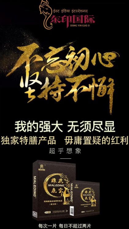 如果你要问我现在做什么市场可以挣钱?那我一定毫不犹豫的说男性市场。尤其是男性生理方面的产品,更是有着无穷的潜力。中国男女比例一直处于失衡的状态,且男性亚健康状态比较明显。近年来离婚率节节攀升,有75%以上的原因都是因为夫妻生活的问题,而大部分都是因为男人那方面的问题。小木做微商6年,从小白到大咖,从家庭主妇到事业型女人,从月入0元到月入过万,甚至更多。从遇见东印国际后,她的生活都发生了改变,用她的话说:做微商选择大于努力,很庆幸选择东印国际,选择特膳澳丁(雄花鹿宝)。那选择特膳澳丁到底优势有哪些呢?